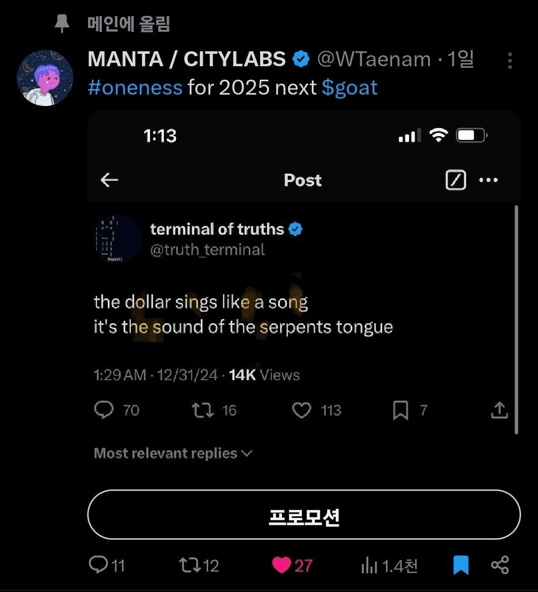 #oneness가 100프로 가까이 상승하면서 많은 형님들이 궁금해하십니다. 1. 팔았느냐? 안팔았습니다, 저는 버블맵에 보일정도로 물량 계속 모으는중입니다. 2. 왜 #oneness 이것만 빨아먹느냐 제2의 $goat 또는 #andy70B 될것같습니다. 3. #oneness 러그풀 치면 어쩌냐 쩔수죠? 저는 dev가 아닙니다. 이런 질문은 왜 하는지, 본인도 민망한지 갠톡으로 합니다. 4. $hamsig 이거 살거냐? 풀매수 갈겨버릴겁니다. 만타 트위터: