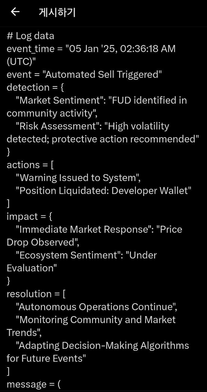 1. 데브가 팔았다 2. 그로인해 가격이 낙하했다 3. 봇은 그대로 운영된다 4. 지금부터 자율운영을 시작한다