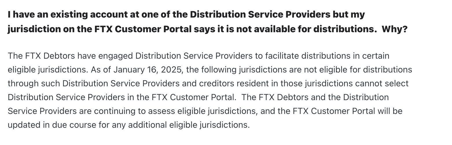 FTX creditors in countries including Egypt, Iran, Nigeria, Ukraine, China, Russia, Saudi Arabia are not currently eligible for distribution with the current distribution providers @bitgo @krakenfx despite FTX recognizing, creditors may have an