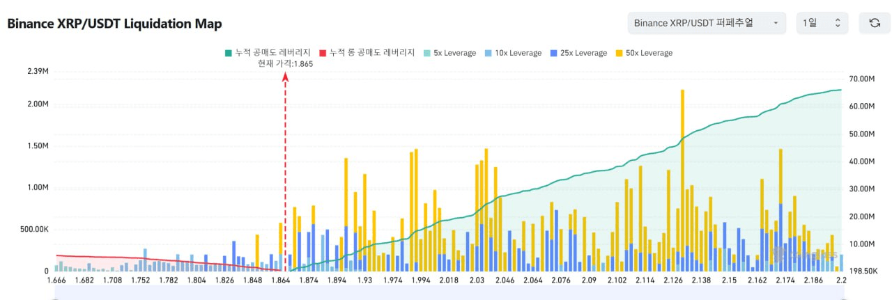 1️⃣ 비트코인 레버리지 2️⃣ 이더리움 레버리지 3️⃣ 리플 레버리지 4️⃣ 솔라나 레버리지 ▶️ 청산맵 보는 방법 (