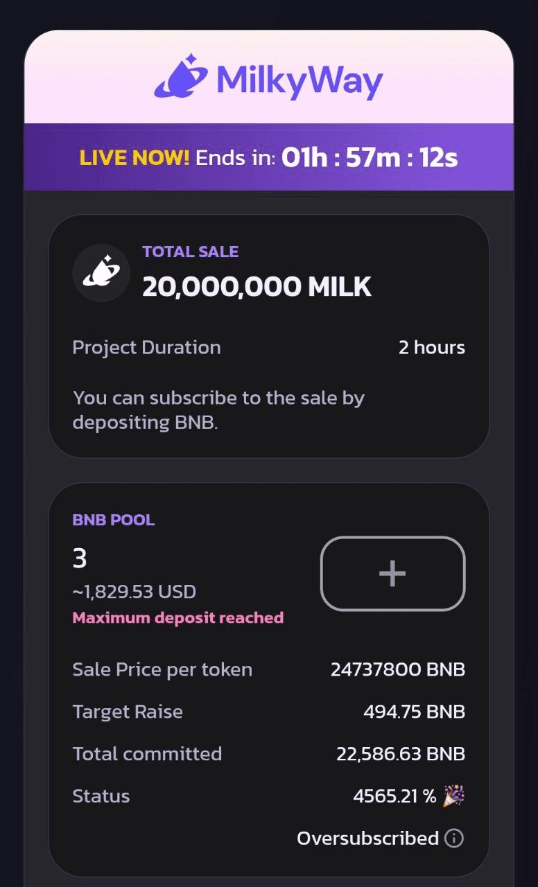 Binance wallet 밀키웨이 세일 열렸습니다 해당자분들 참여 고고싱
