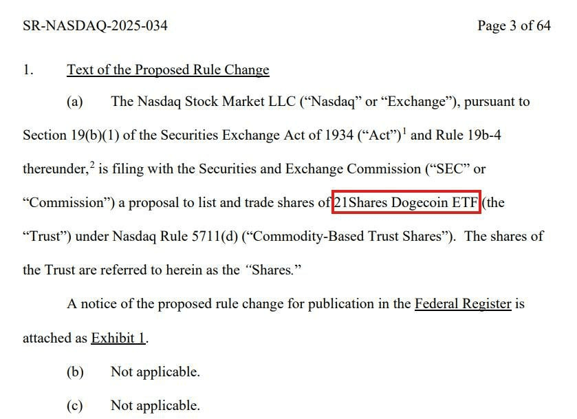 21Shares가 나스닥에 DOGE ETF를 신청했습니다.
