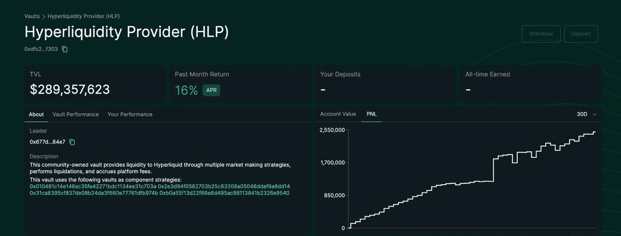 Hyperliquid의 HLP는 $USDC 로 유동성을 공급함. 2025년 3월, JELLY 토큰의 가격 조작으로 인해 HLP는 일시적으로 1,350만 달러의 미실현 손실이 있었으나, 유동성이 적은 자산에 대한 Open Interest 한도를 설정으로 해결함.