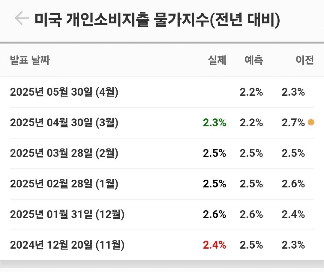 오늘은 미국의 개인소비지출 물가지수 지표가 나오는 날입니다 10분 후