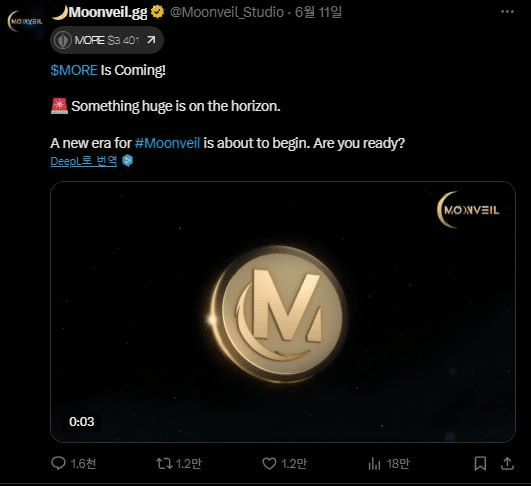 Moonveil์ด ํธ์ํฐ๋ฅผ ํตํด ์งง๋งํ $MORE