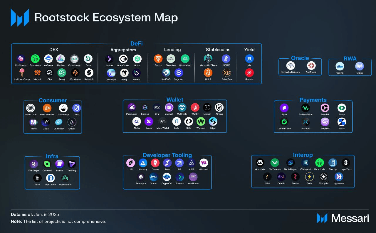 ✅Messari, Rootstock 생태계 지도 #kol 루트스탁 생태계를 한눈에 볼 수 있는 지도를 메사리 리포트에서 공유해줬네요. BTCFI에서도 빠지지않는 RWA와 Payments 섹터가 눈에 띄네요 (원문) >>Rootstock? - BTC 네트워크 기반의 사이드체인 - EVM 호환으로 스마트컨트랙트 손쉽게 온보딩 가능 - BTC 사이드 체인 중 최초 영지식 증명 도입 -> 보안 UP >>여름맞이 이벤트도 챙겨가시길! 일정: 6월 14일(토) ~ 6월 28일(토) - 당첨자 발표 및 상품전달: 6월 29일 (일) 상품: 커피 기프티콘 x 200명 1️⃣ 루트스탁 공지방 참여 2️⃣ 루트스탁 소통방 참여 3️⃣ 구글폼 작성