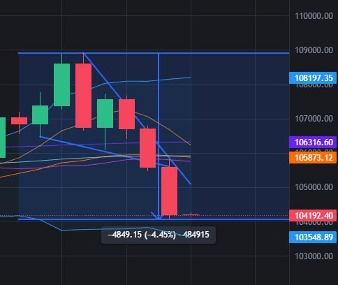 ๐Ÿช™ ๋น„ํŠธ์ฝ”์ธ์€ ์ง€๋‚œ 20์‹œ๊ฐ„๋™์•ˆ 4.5% ํ•˜๋ฝํ–ˆ์Šต๋‹ˆ๋‹ค.