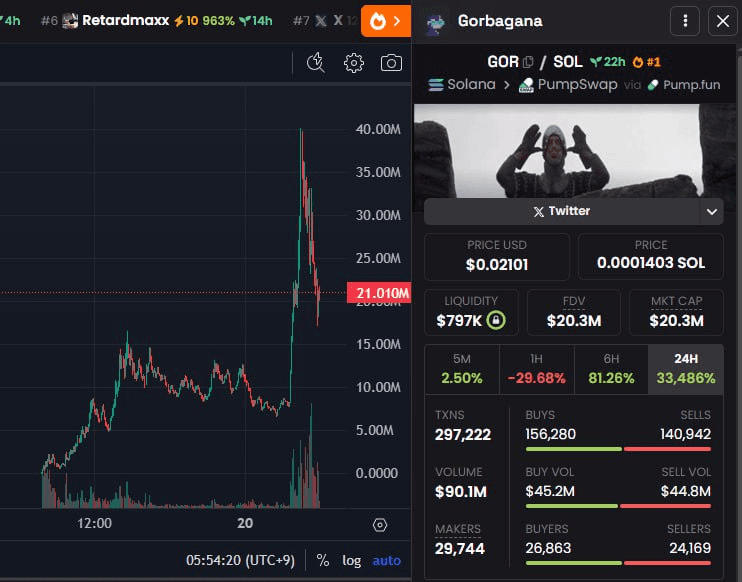 7. 솔라나 대가리가 얽힌 이 모든 얘기가 존나 신선하니까 lex가 인정한 $GOR도 존나 떡상함