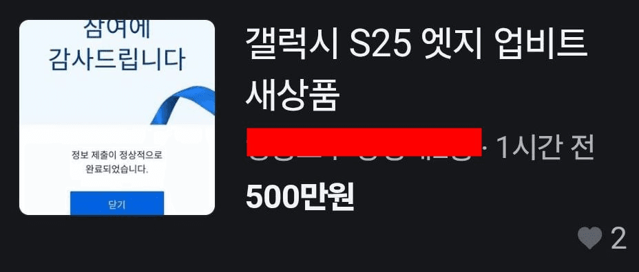 업비트폰 퀴즈 당첨자 100분은 문자 받았다고 하네요 저도 문자 받았는데 지인의 장난 문자였네요.. 당근마켓에 500만원에 올라와있음