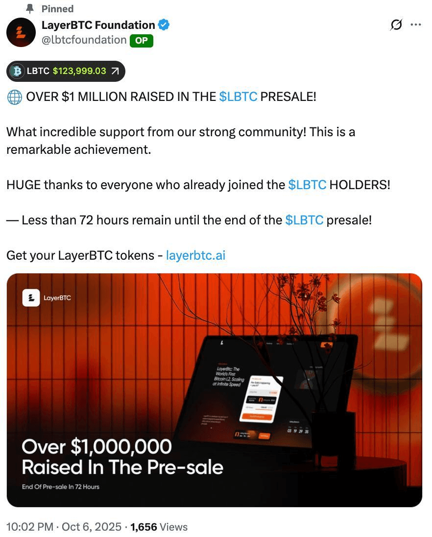 차세대 비트코인 L2, LayerBTC 약속대로 진짜 10월 10일에 상장하나 보네용 원문 #kol