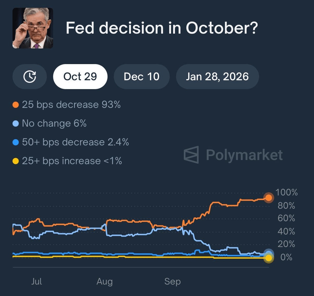 연준이 이번 달 금리를 인하할 가능성이 95% 이상으로 급등했습니다